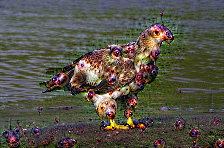 VGG also does not have the local response normalization layers that GoogleNet has. As a result, its nightmares are often hyper-saturated with starbursts of color.