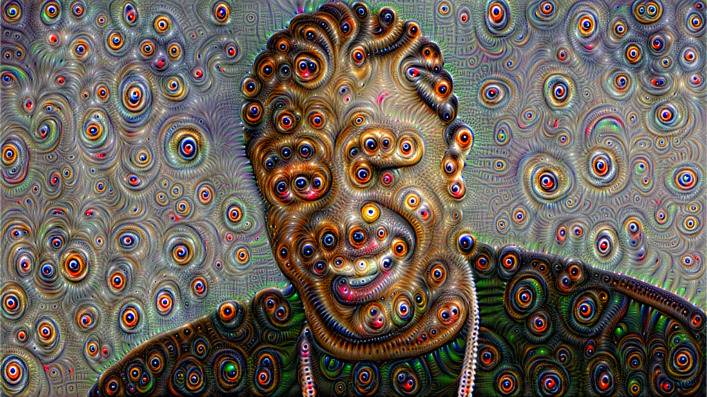 -rounds n: change the number of rounds (default 1). More rounds means more images generated and usually more change to the original image.-iters n: change the number of iterations per round (default 10). More iterations means more change to the image per round.-range n: change the range of possible layers (default 1). If set to one, only the given layer is chosen at every iteration. Otherwise, a layer is chosen randomly within than range (e.g. 10 -range 3 will choose between layers 9-11).-octaves n: change the number of possible scales (default 4). At one octave, only the full size image is examined. Each additional octave adds a smaller version of the image (3/4 the size of the previous octave).-rate x: change the learning rate for the image (default .05). Higher means more change to the image per iteration but also some instability and imprecision.-thresh x: change the threshold for features to be magnified (default 1.0). Only features overxstandard deviations away from the mean are magnified in the target layer. A higher threshold means fewer features are magnified.-zoom x: change the zoom applied to the image after each round (default 1.0). You can optionally add a zoom in (x < 1) or zoom out (x > 1) to be applied to the image after each round.-rotate x: change the rotation applied after each round (default 0.0). Optional rotation after each round.